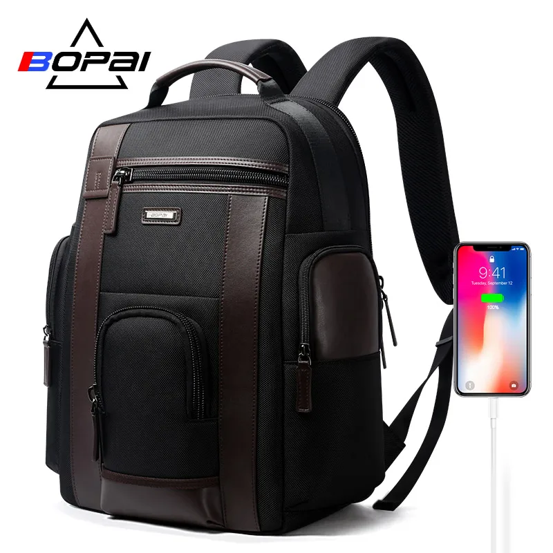 BOPAI Anti theft Enlarge Backpack USB External Charge 15.6 Inch Laptop Backpack Men Waterproof School Backpack bags for Teenager